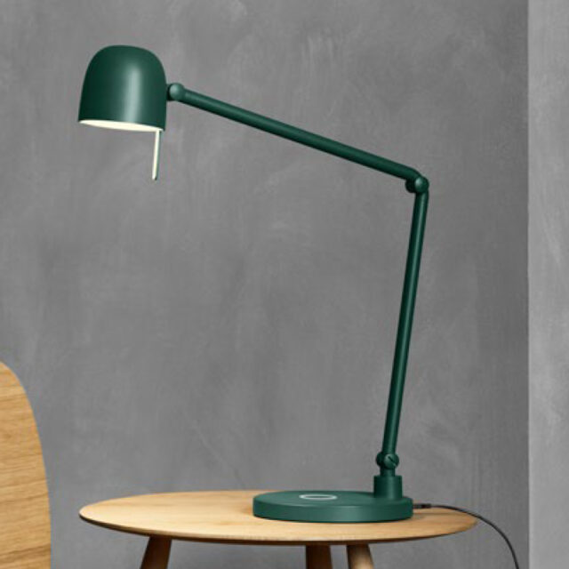 Med opladningsfunktion i bordfoden (QI- og USB-opladning)